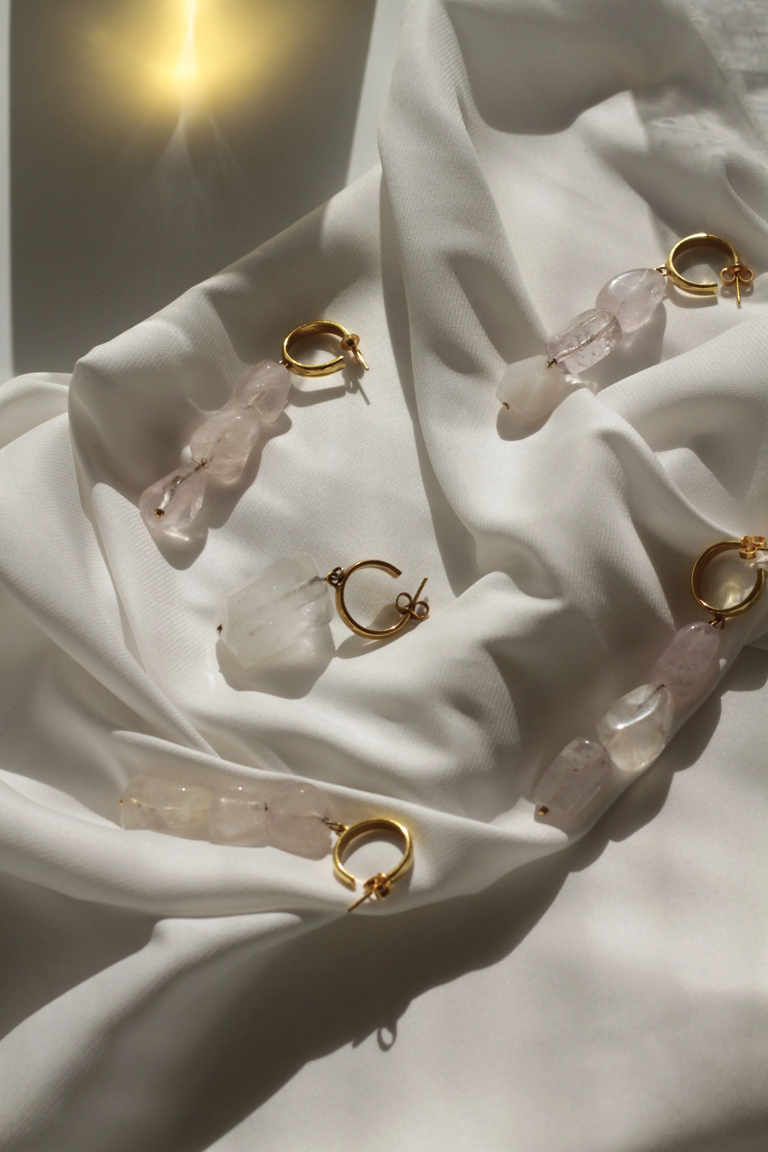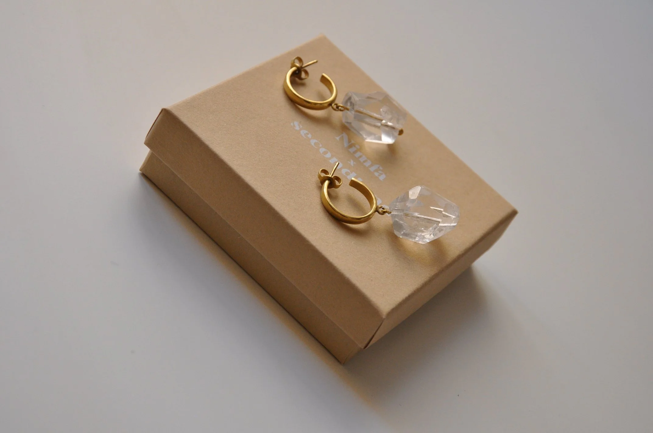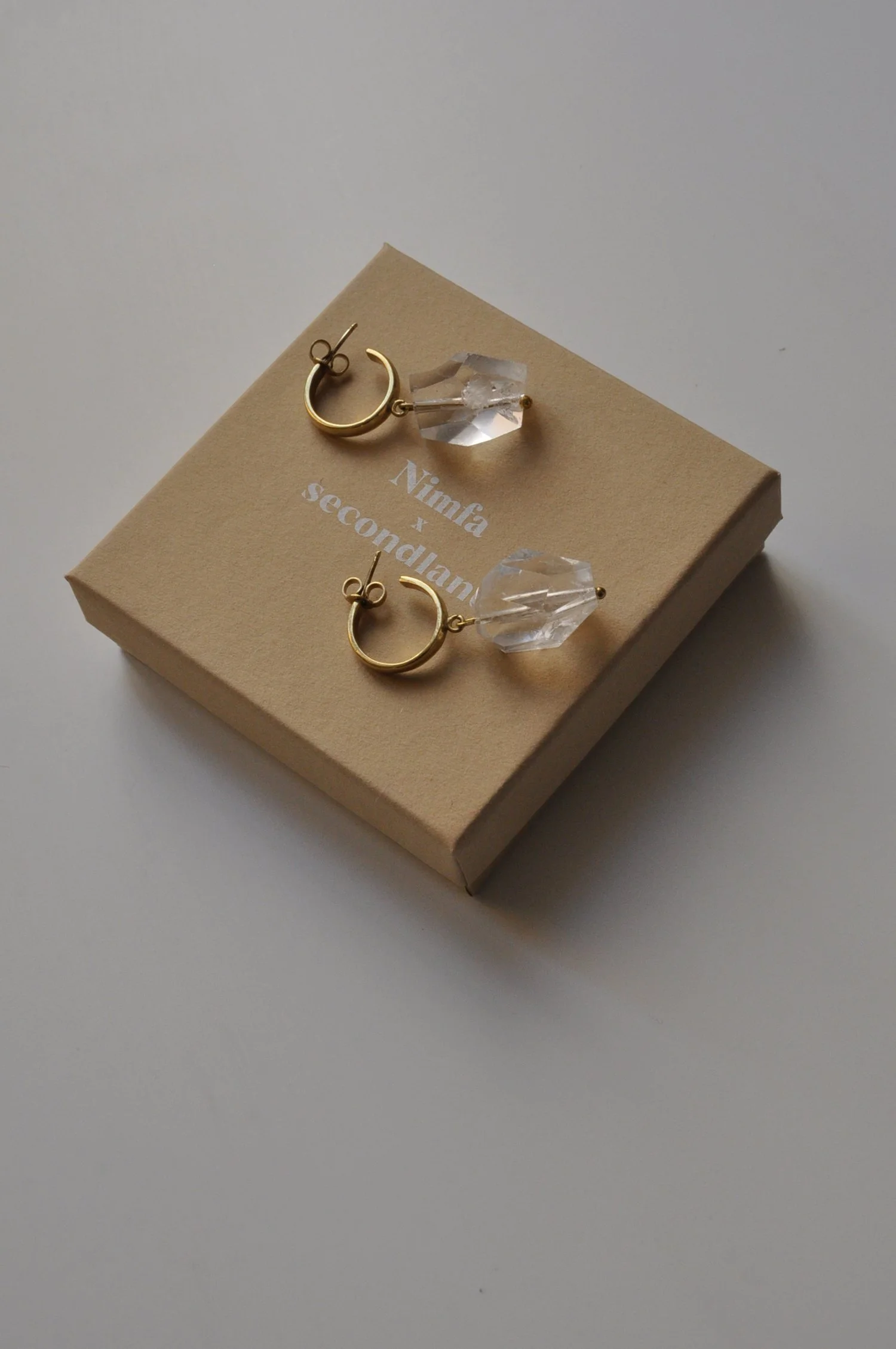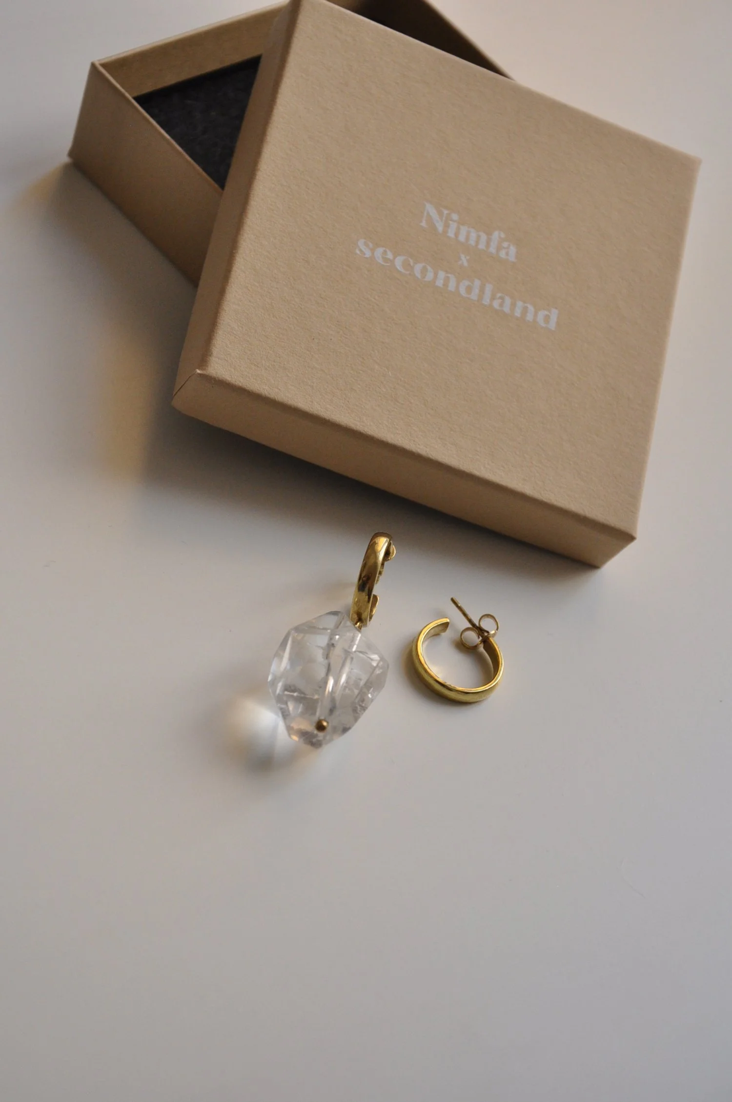 The asymmetric Gaia Terra earrings were born from the aesthetic fusion of Nimfa’s Gaia hoops and Secondland’s crystals.