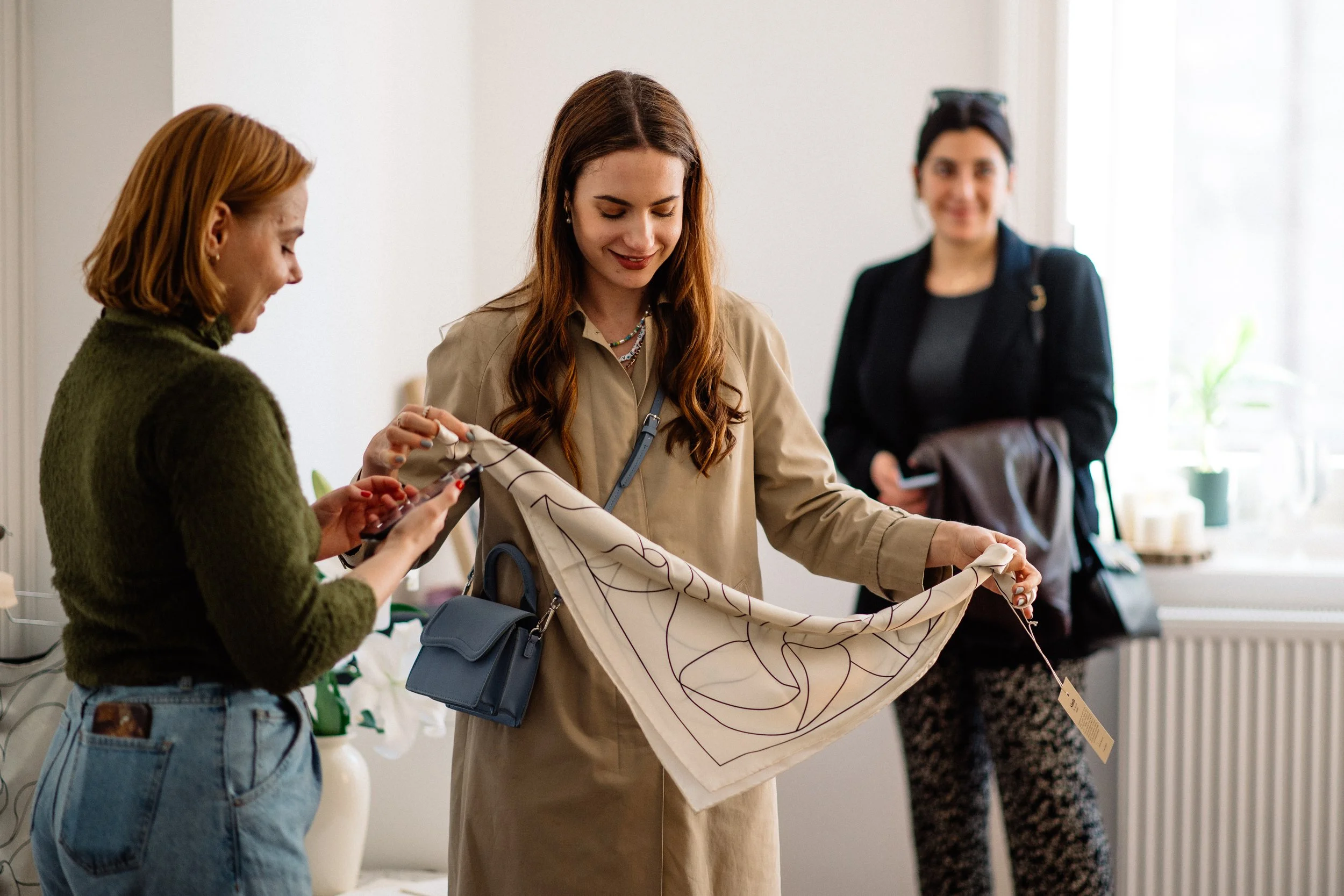 Clients can access a private showroom, where selections are curated to match their personal style and wardrobe needs. This approach allows Nimfa to offer well-made, fashion-forward pieces while avoiding the inconsistencies and challenges of traditional thrift shopping.