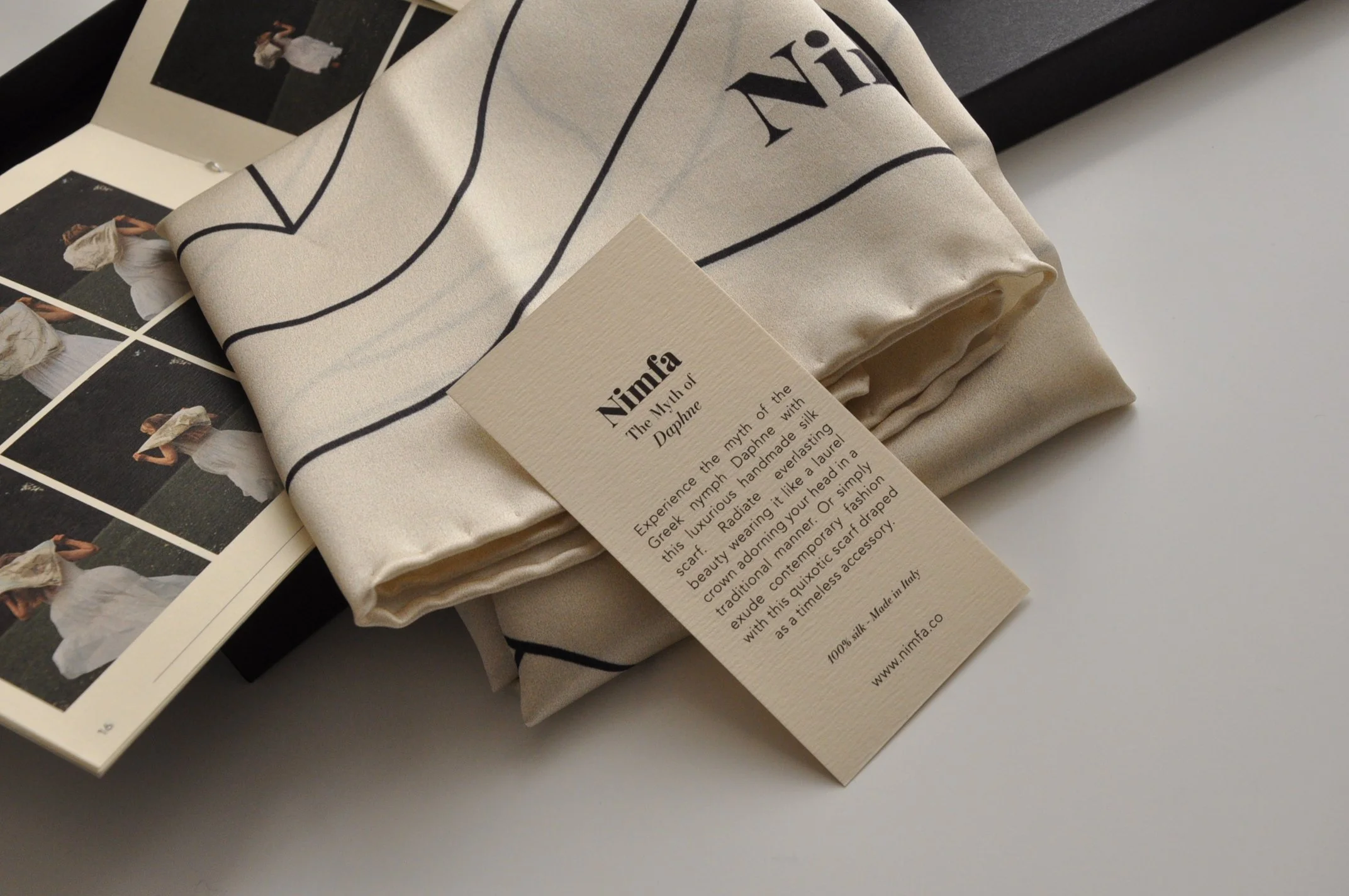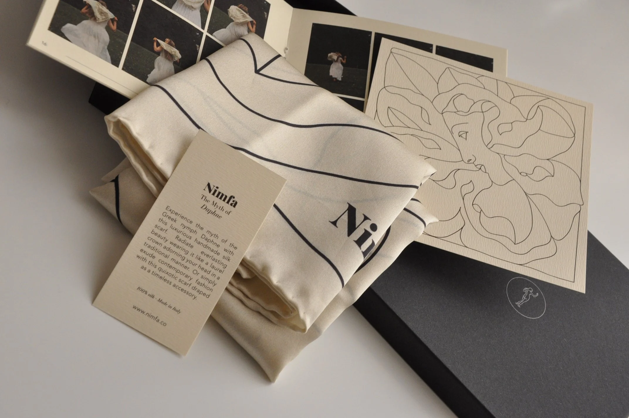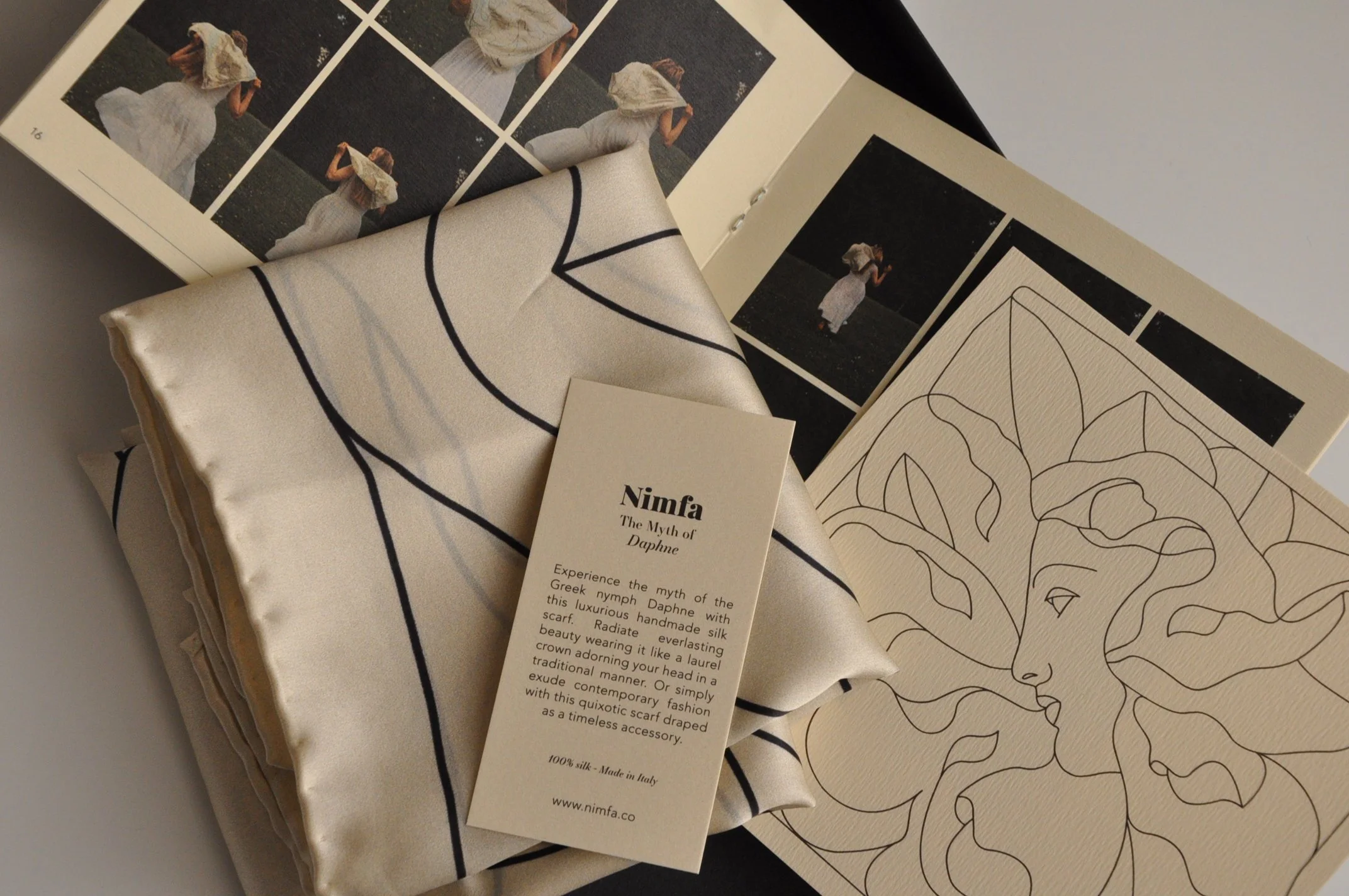 Creation of luxury, statement scarves that reflect Nimfa’s brand values: mythology, elegance, and sustainability.