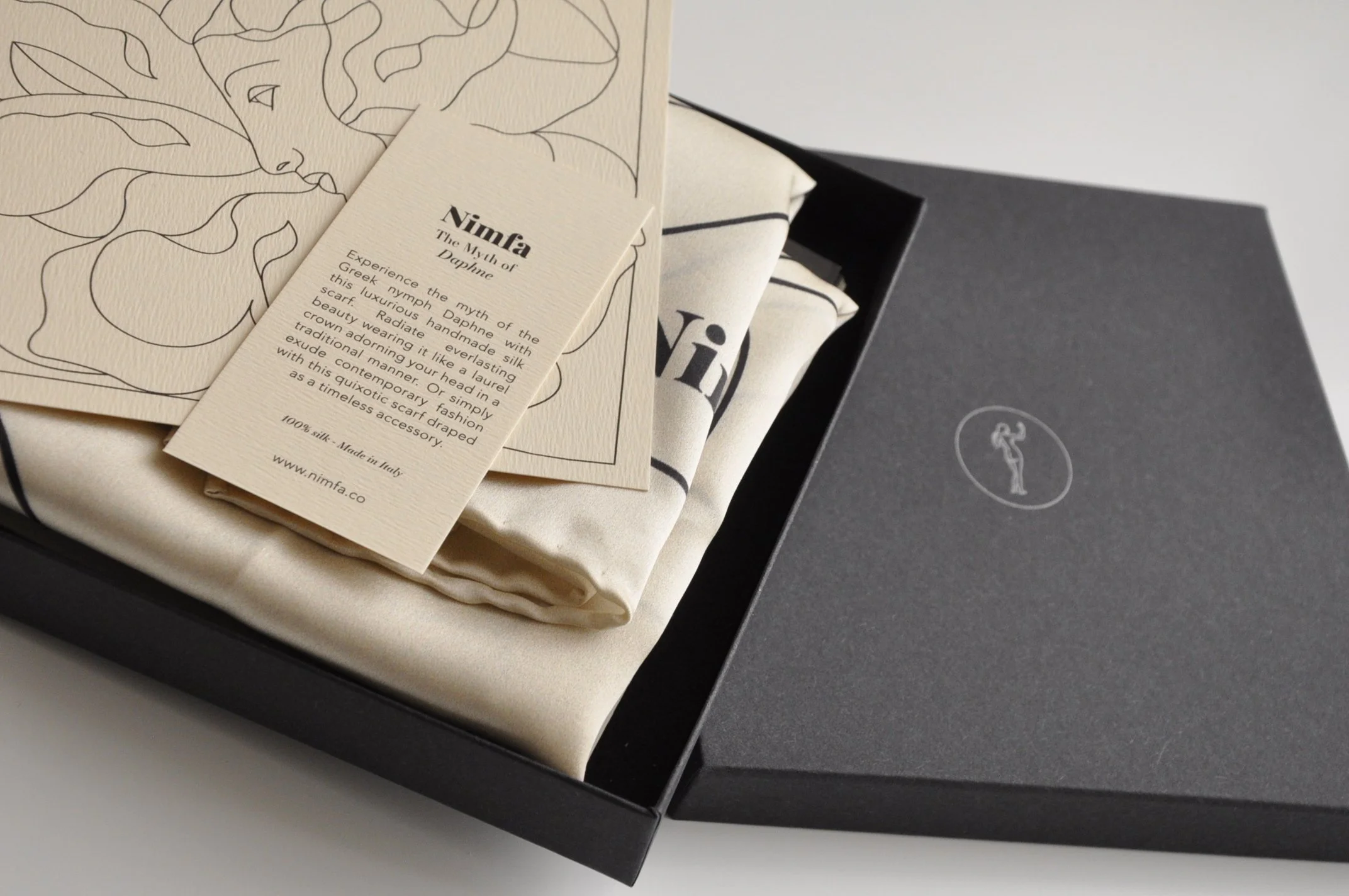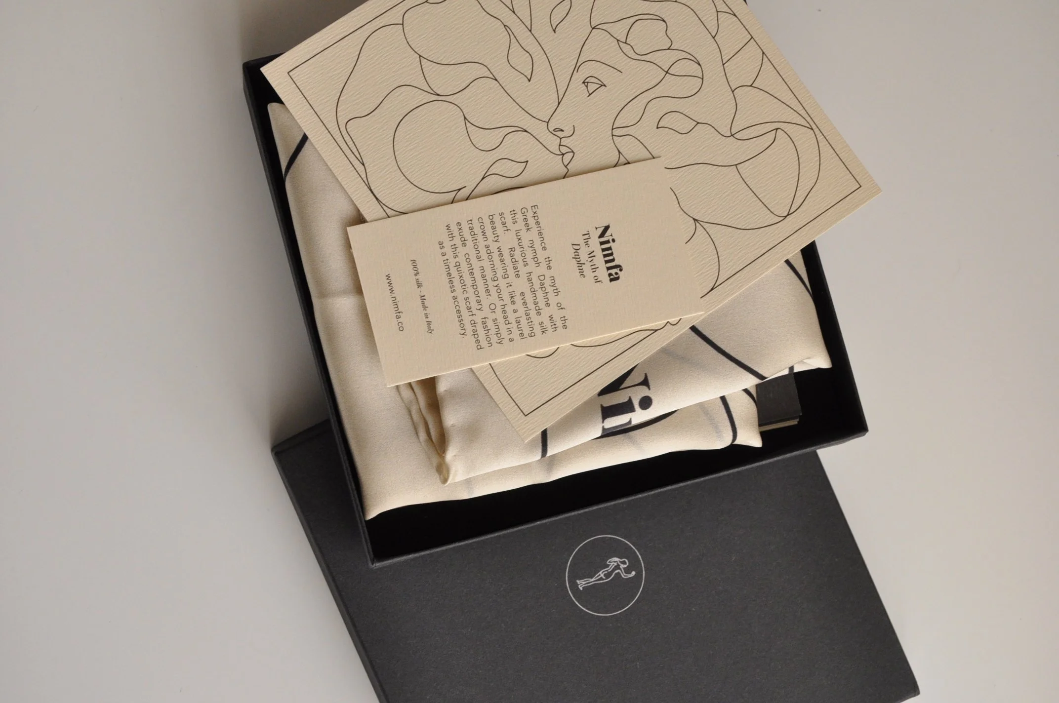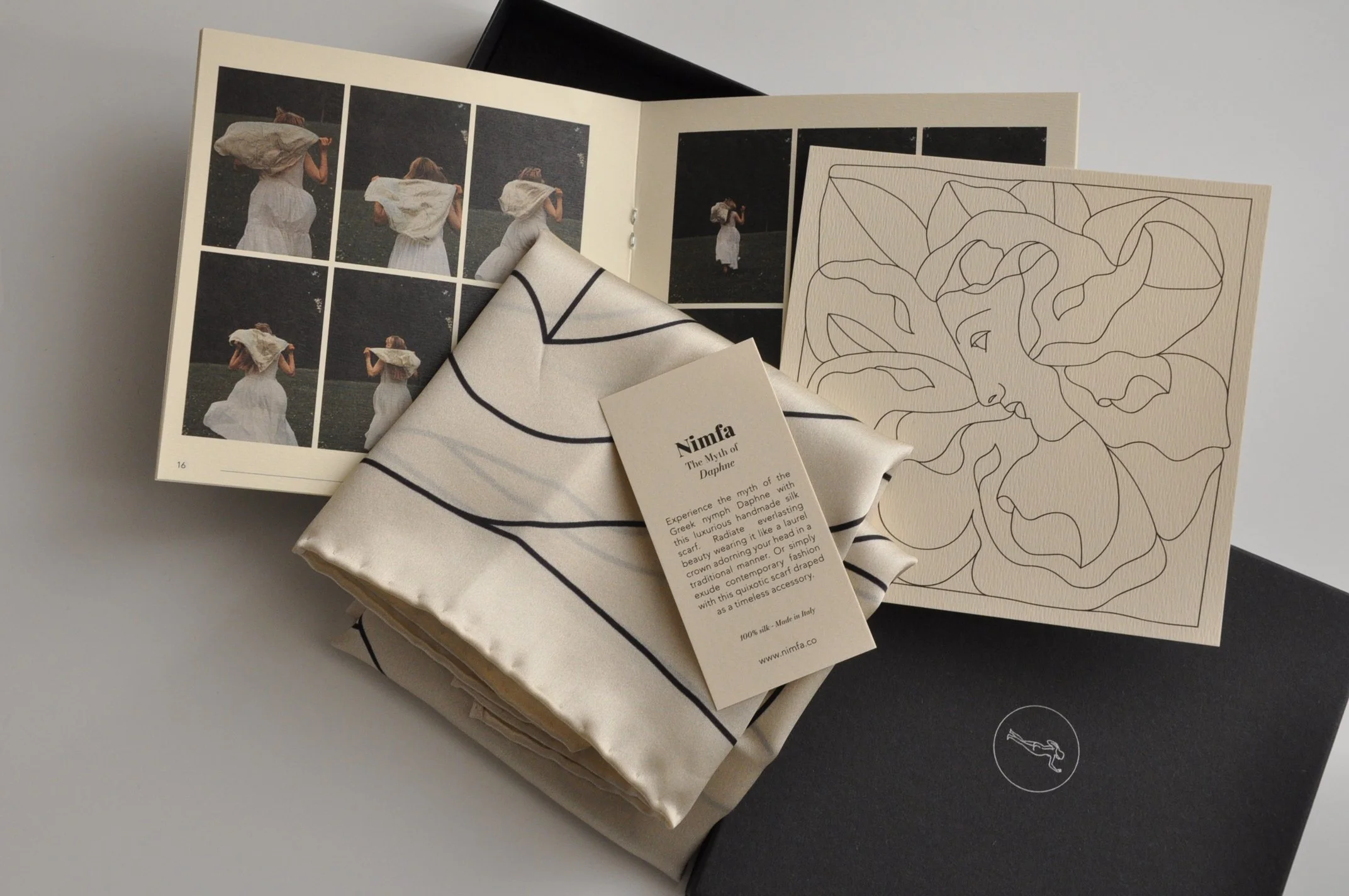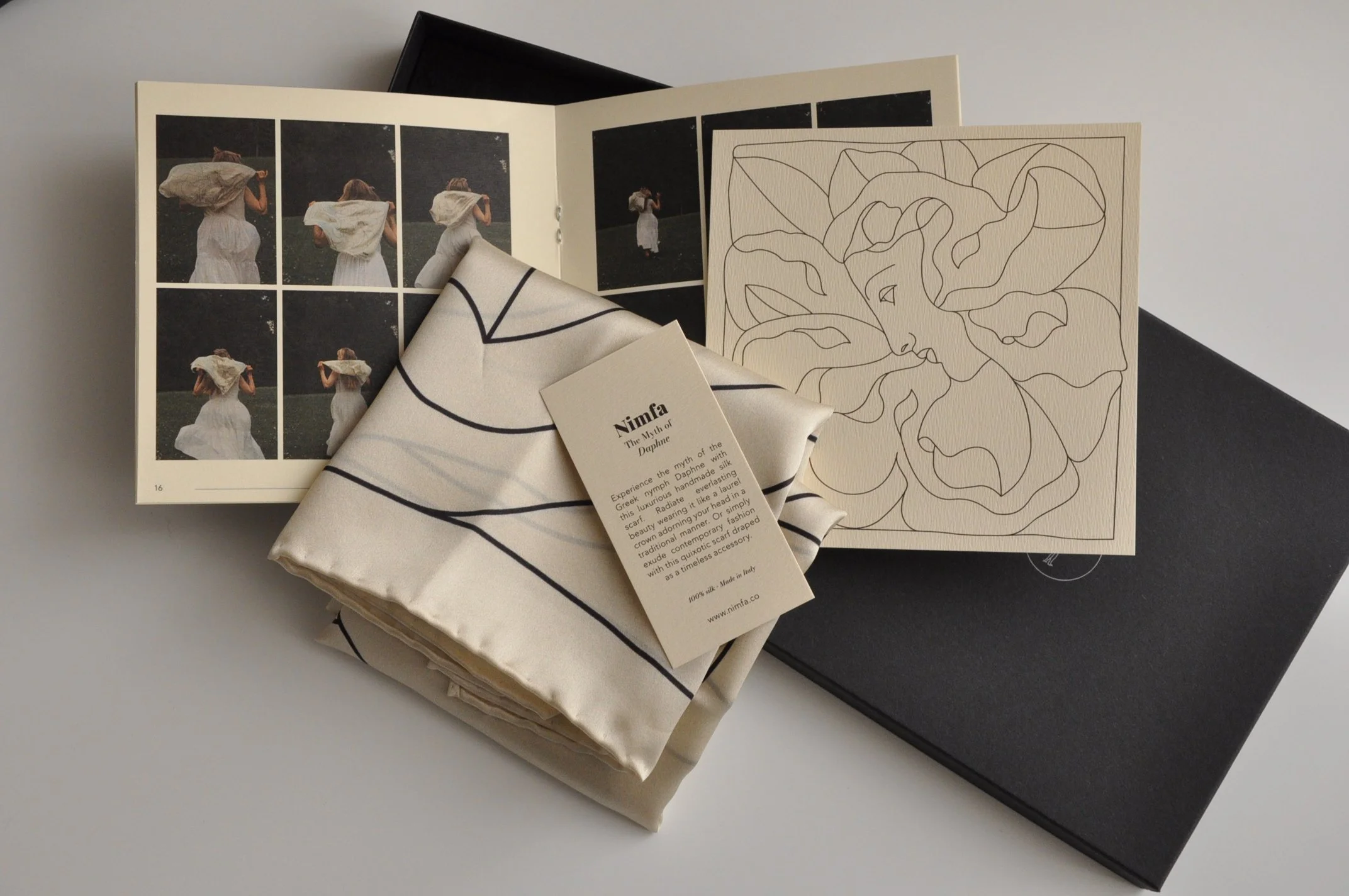 Creation of luxury, statement scarves that reflect Nimfa’s brand values: mythology, elegance, and sustainability.