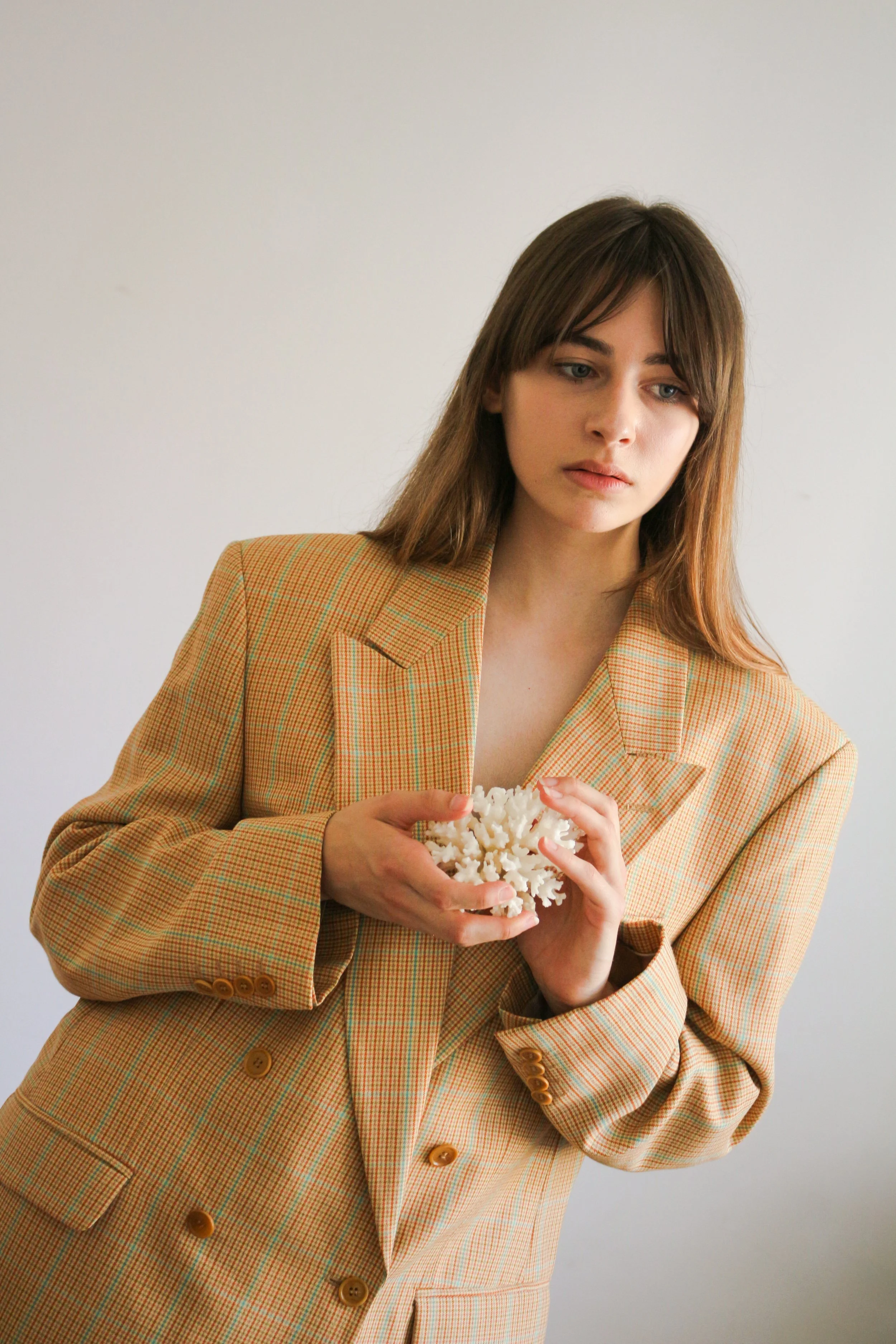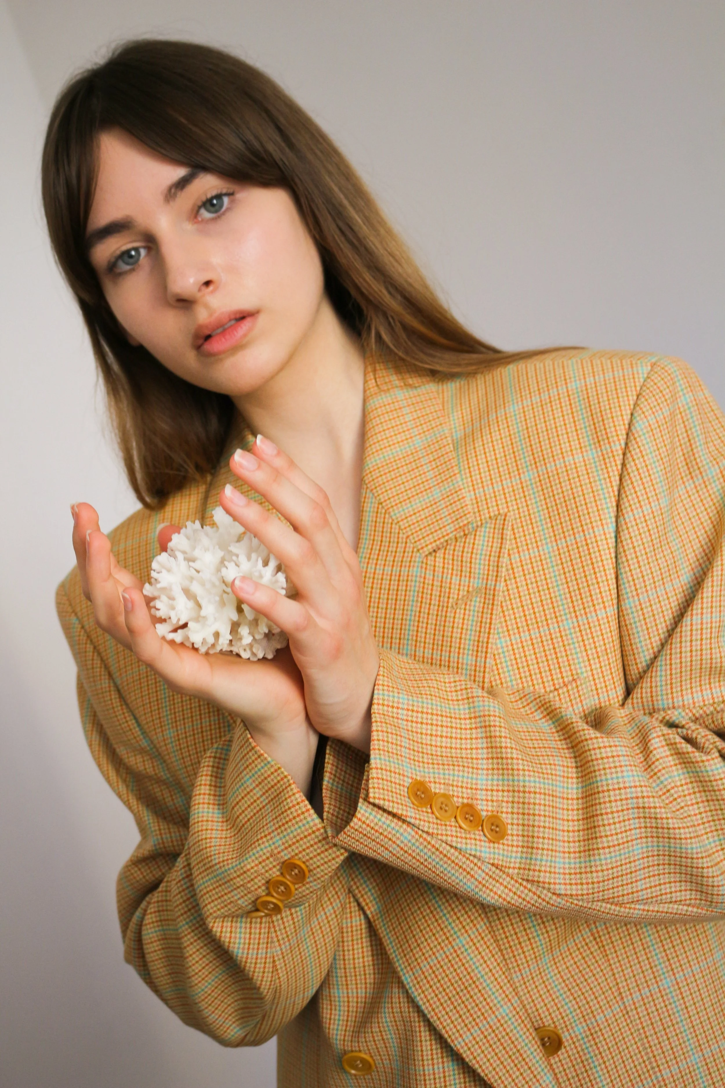 Handpick vintage garments made from high-quality materials: wool, angora, cashmere, cotton, linen, rami, viscose, and silk.